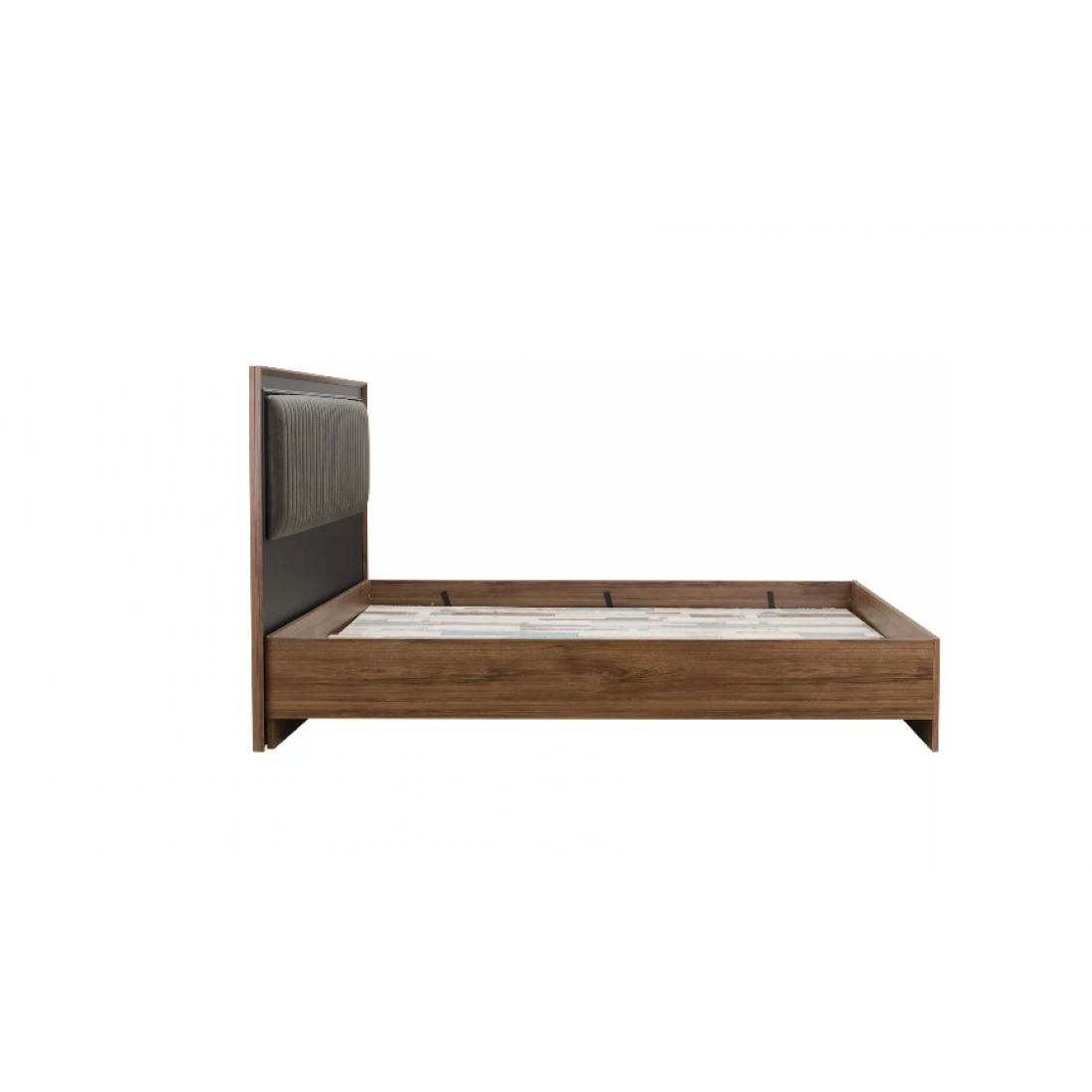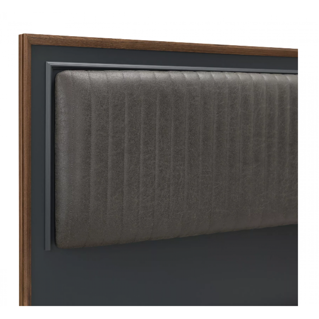Спинка кровати с деревянной облицовкой и мягкой центральной частью.