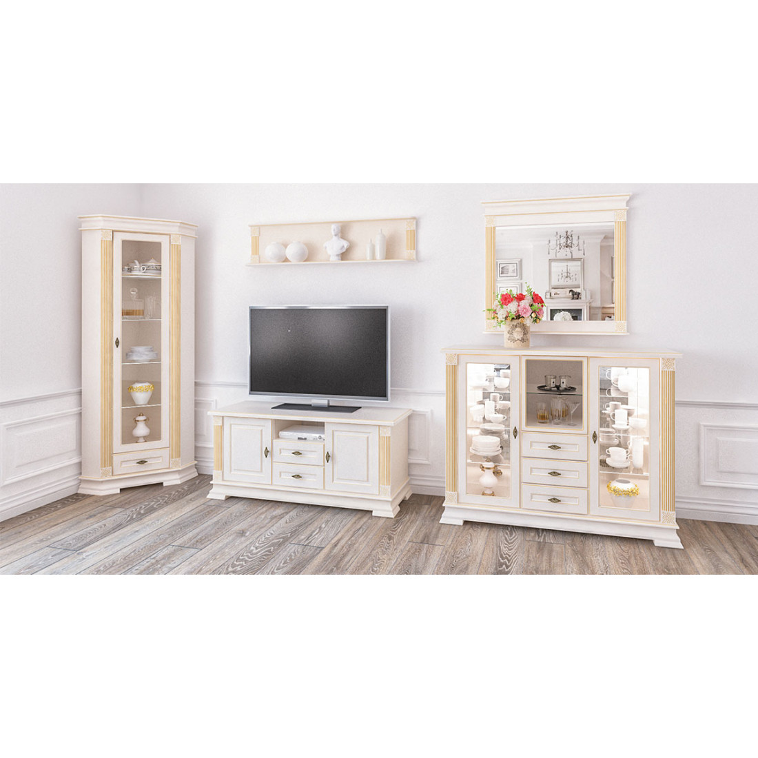 Витрины гостиной Афина послужат прекрасной основой, а тумба для телевизора и настенная полка, прекрасным дополнением комплекта.