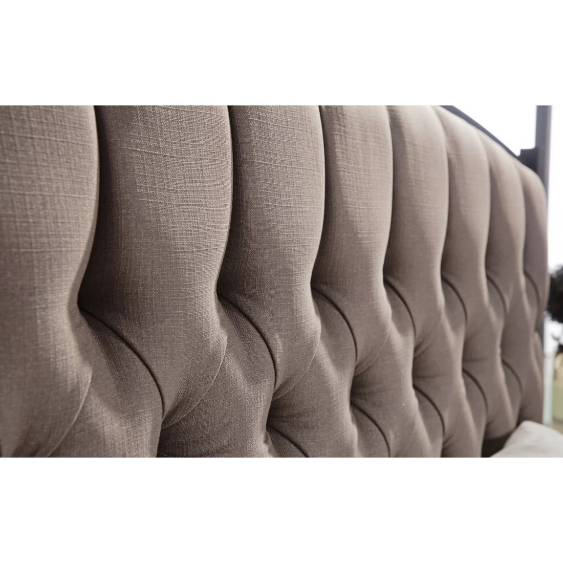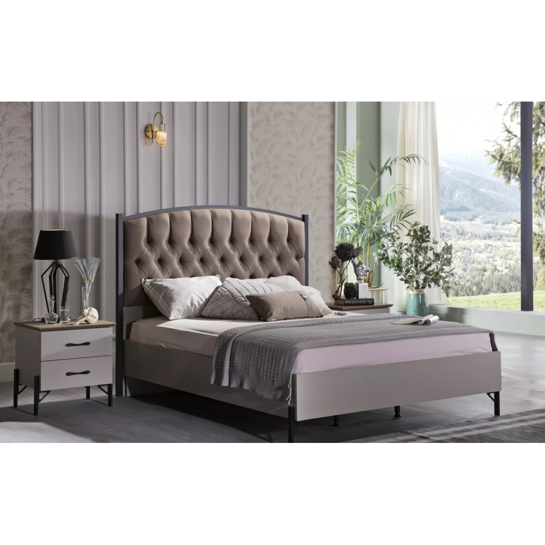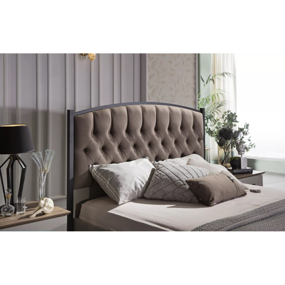 Кровать "Палвин" выполнена в светлых тонах коллекции. Светлое основание с металлическими ножками и мягкой центральной частью на спинке освежат вашу спальню на 100%.
