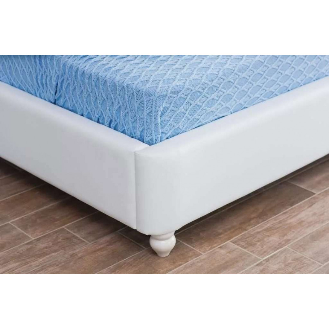 Кровать оснащена встроенным основанием для матраса — прямыми ламелями из березовой фанеры.