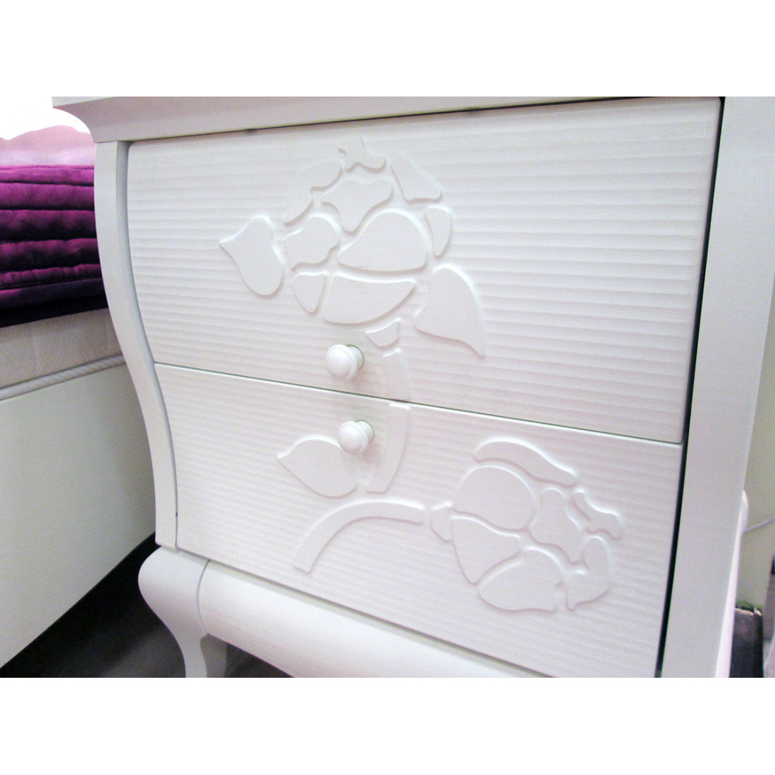Прикроватная тумба для спальни МН-218-02 серии Астория от Мебель-Неман в стандартной конструкции с двумя выдвижными ящиками смотрится свежо и оригинально, благодаря изящному оформлению. Купить прикроватную тумбу «под старину» стоит в дополнении к кровати – чтобы добавить комфорта в ежедневный отдых.