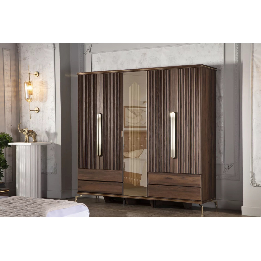 Шестистворчатый шкаф для одежды с зеркалами Богемия Вуд (Bogemia Wood) БМШ1/6 (Wo)