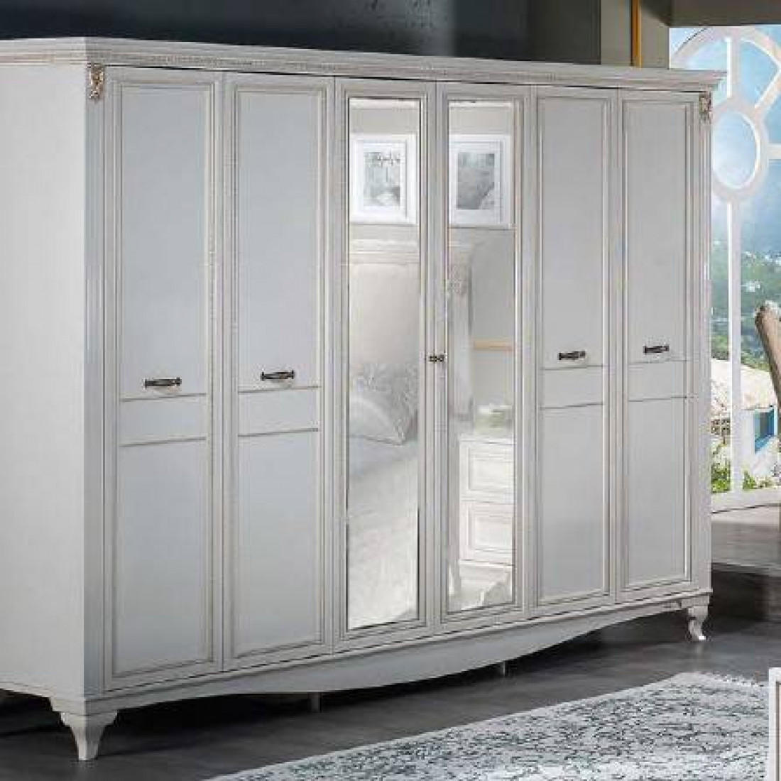 Шестидверный шкаф Карат KART-34 очень удобен и функционален, подходит для размещения большого количества одежды, имея отсеки с полками и штанги.