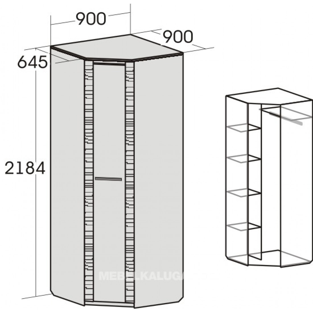 900×900×2185 мм