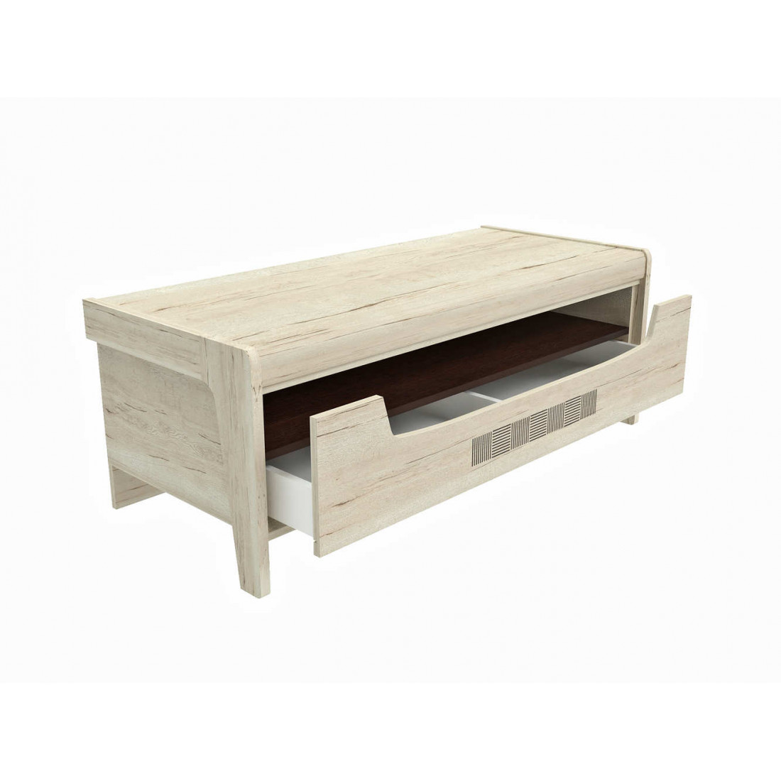 Тумба под ТВ М-7 Мале - обладательница лаконичного и свежего дизайна. Она является представителем коллекции «Мале». В этой коллекции особое внимание уделено внешнему виду и тактильным ощущениям от прикосновения к мебели, схожей с натуральным деревом по рисунку и шероховатости.